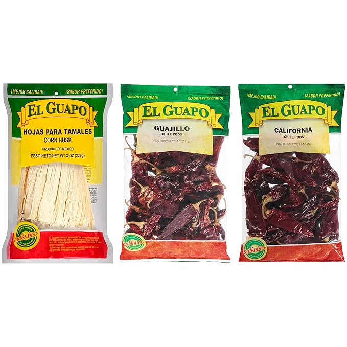 El Guapo Tamales Variety Pack, Hispanic Ingredients, Includes Whole Corn Husks, Guajillo Chili Pods, and California Chili Pods, 30 oz