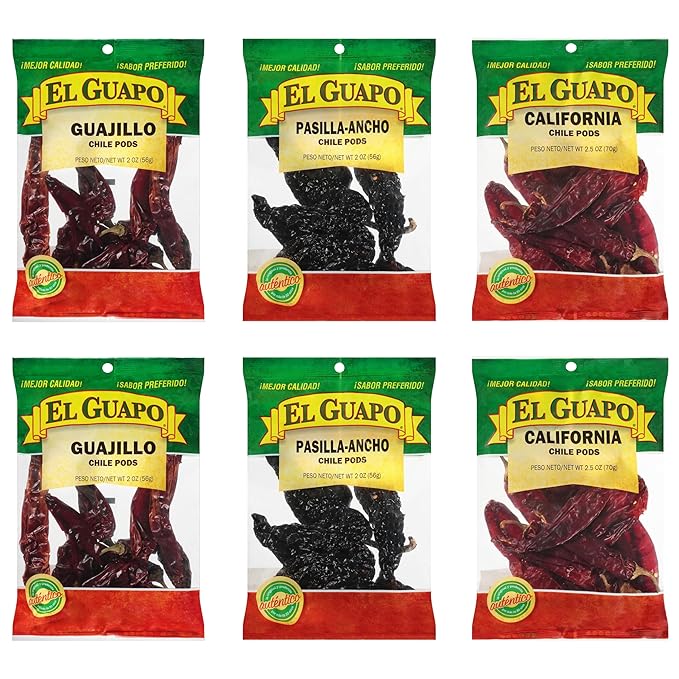 El Guapo Chile Pods Variety Pack, Hispanic Ingredients, Mexican Chiles, Includes Whole Guajillo, Pasilla Ancho, and California Chili Pods, 13 oz
