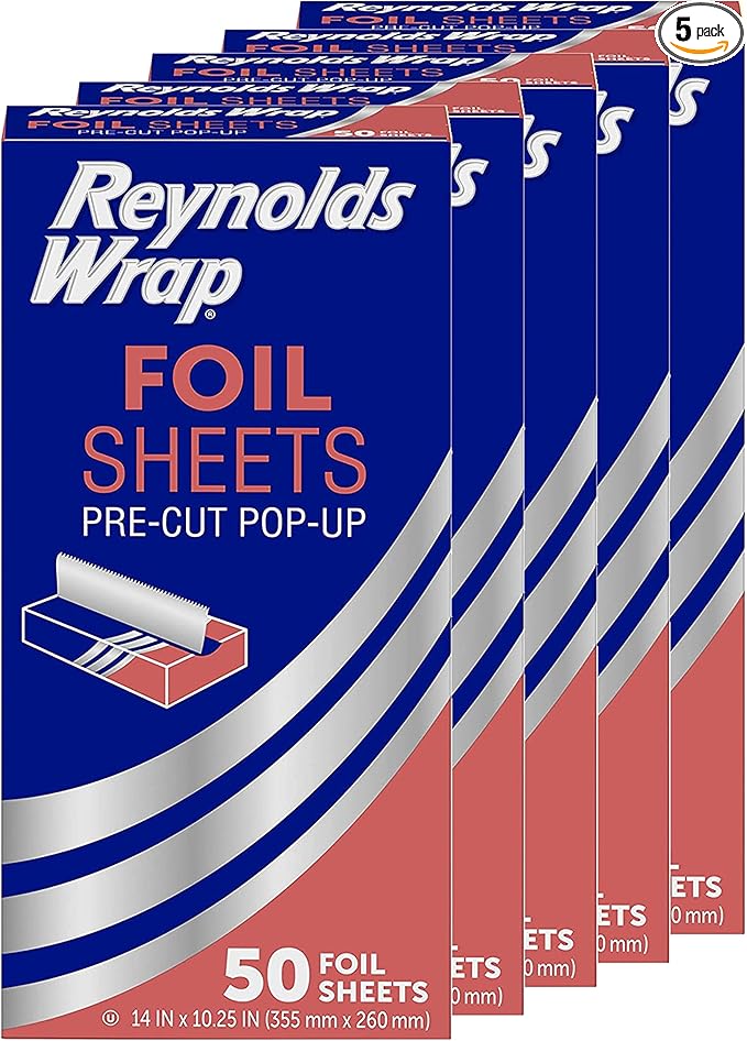 Reynolds Wrap Pre-Cut Pop-Up Aluminum Foil Sheets, 14 x 10.25 Inches, 50 Sheets (Pack of 5), 250 Total